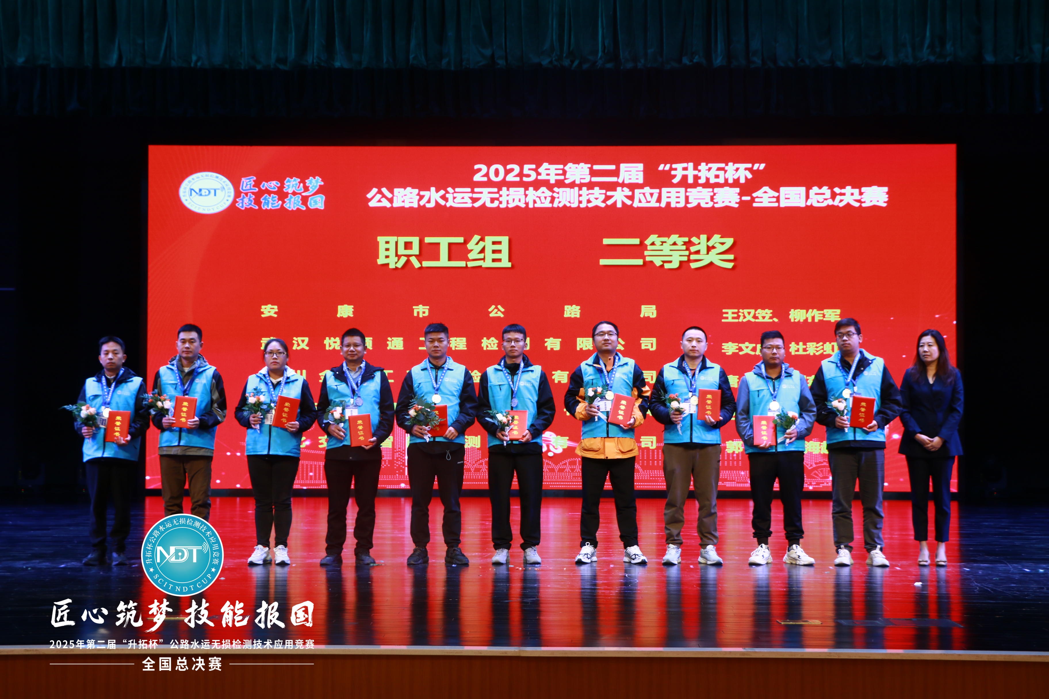 2025年10月12日至14日,由交通运输部职业资格中心主办的2025年第二届“升拓杯”公路水运工程无损检测职业技能竞赛全国总决赛,在甘肃交通职业技术学院(兰州)成功举办。来自全国22个省、自治区、直辖市的46支职工代表队齐聚一堂,同台竞技、切磋技艺。金通检测公司唐小冬、胡东伟两位同志在西南赛区诸多参赛队伍中脱颖而出,作为四川省代表队成员参赛,凭借扎实的专业功底和出色的现场发挥,最终荣获职工组全国“二等奖”。