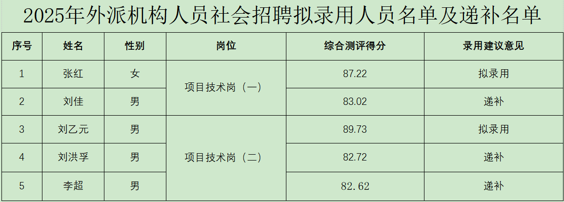 现将四川金通工程试验检测有限公司2025年外派机构社会招聘拟录用人员名单及递补名单予以公示。